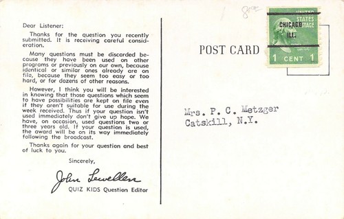 Quiz Kids 1940s Nbc Network Tv Show Sponsor Joe Kelly Kids Postcard R01 Ebay